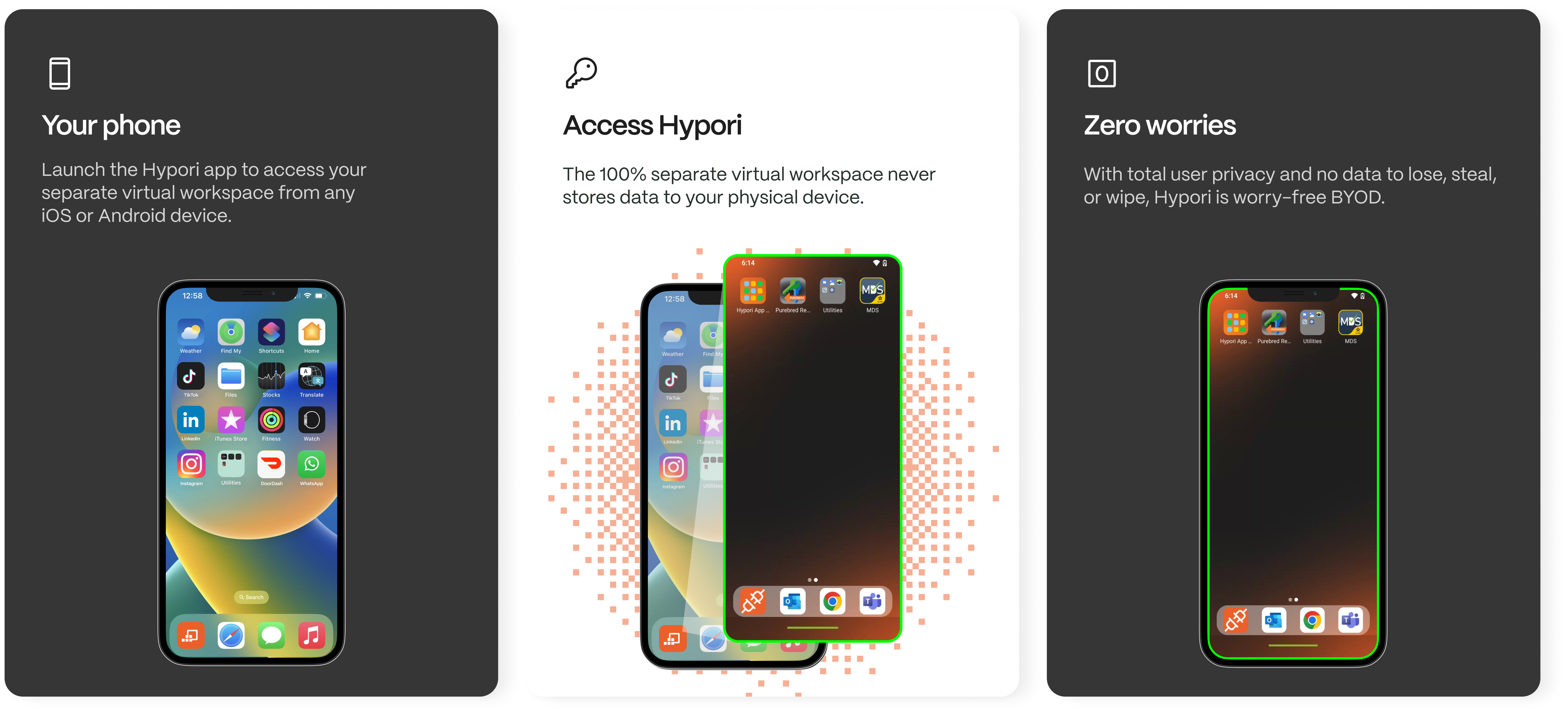 Hypori has been a game-changer for me professionally. As someone who supports multiple facilities, I often struggled with accessing my work tools while I was on the move. But with Hypori, I can easily access Outlook, OneDrive, Teams, and anything else I need from anywhere, at any time.